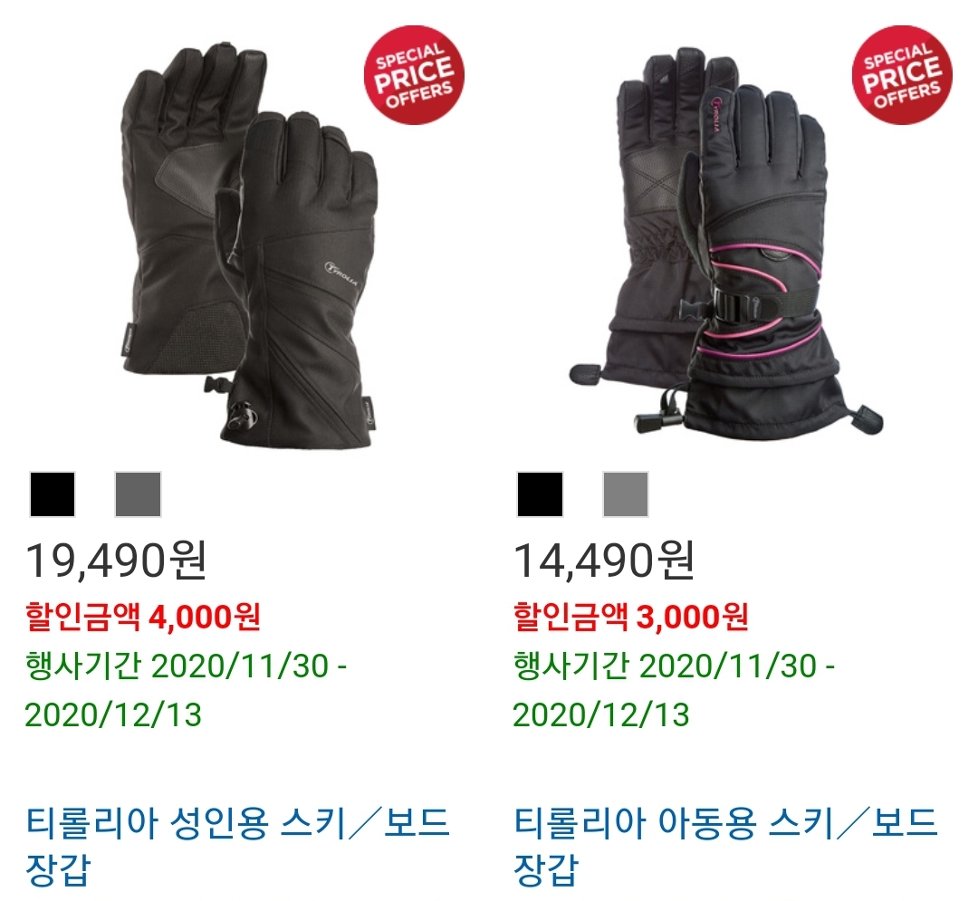 스키시즌을 대비하여 성인용 아동용 스키 보드 장갑도 할인 중 입니다