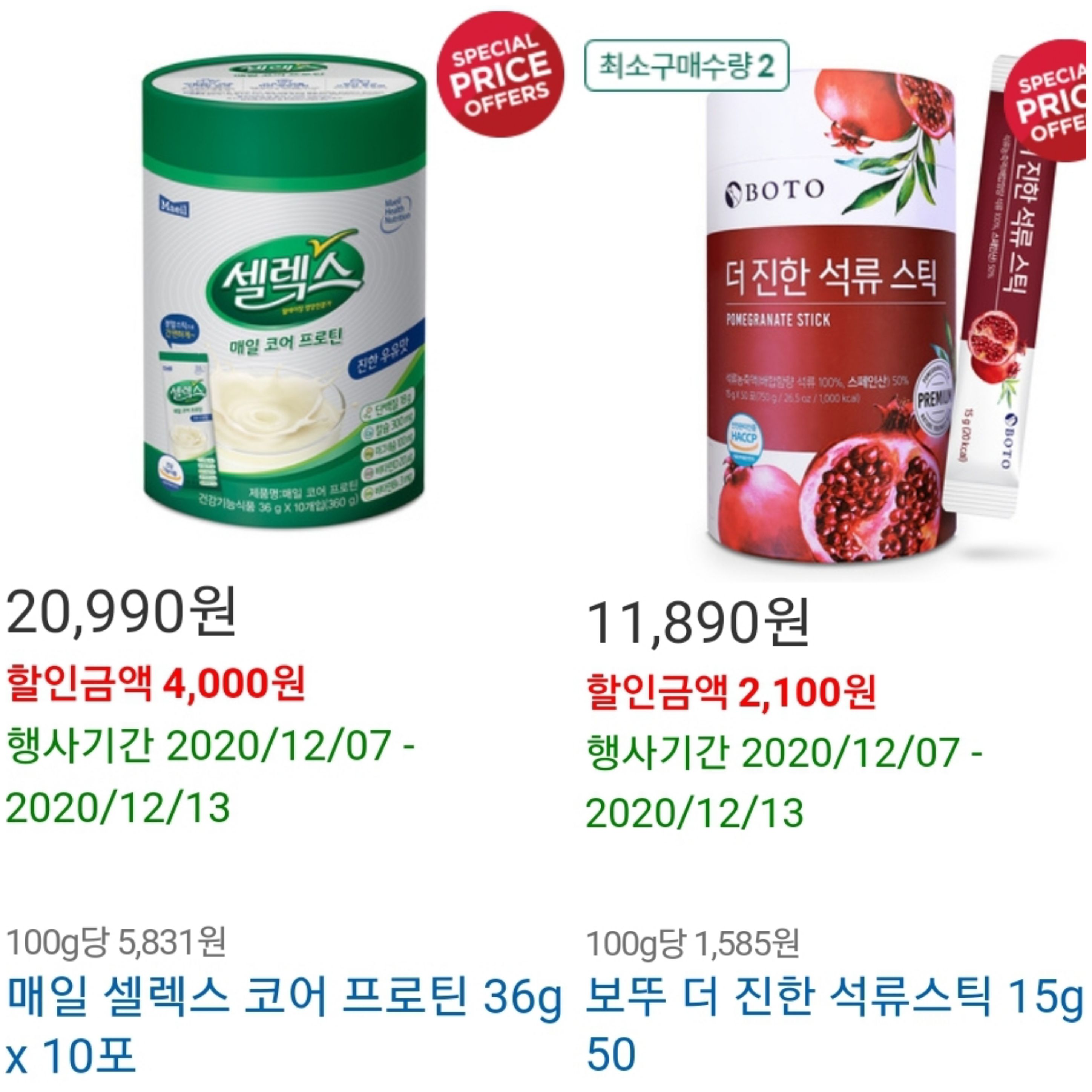 다이어트 필수 식품인 매일 셀렉스 코어 프로틴도 할인 판매중이네요 여성에게 좋은 석류스틱도 있습니다