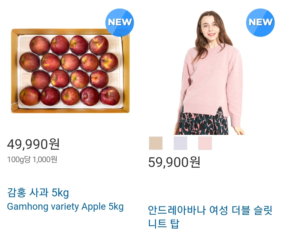 감홍 사과, 여성 더블 슬릿니트 탑 제품이 추가되었습니다