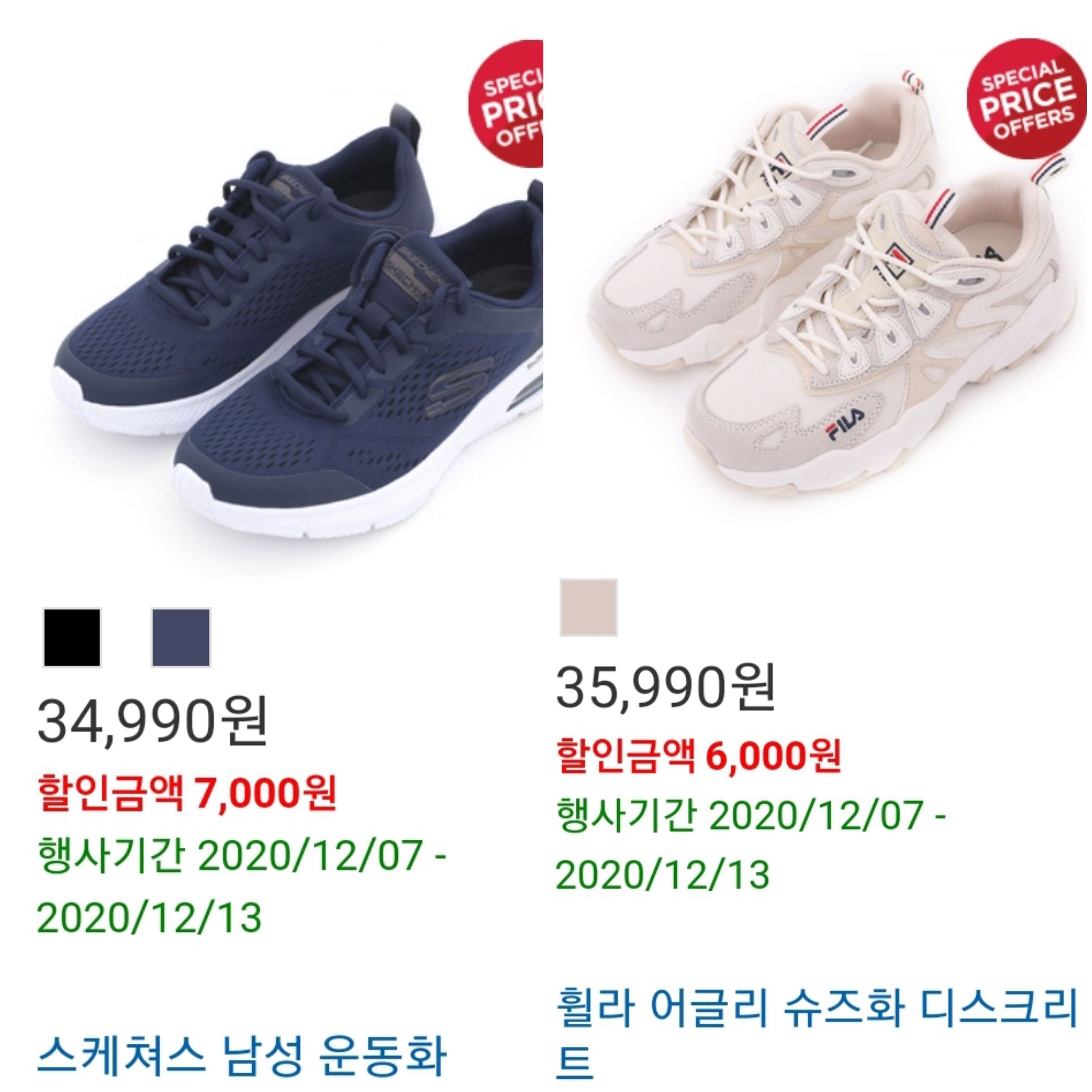 스케쳐스 남성 운동화 그리고 휠라 어글리 슈즈가 눈에 띄네요