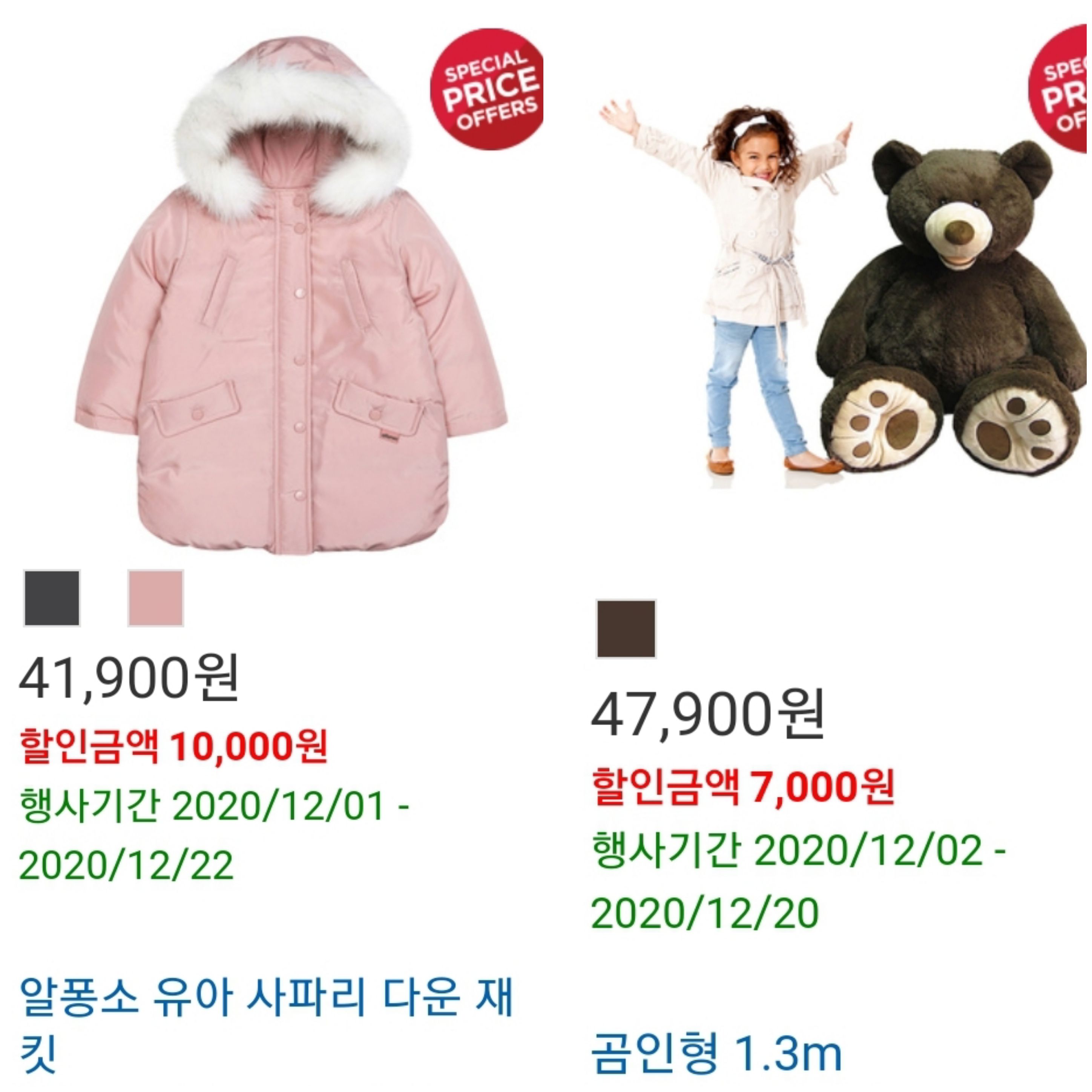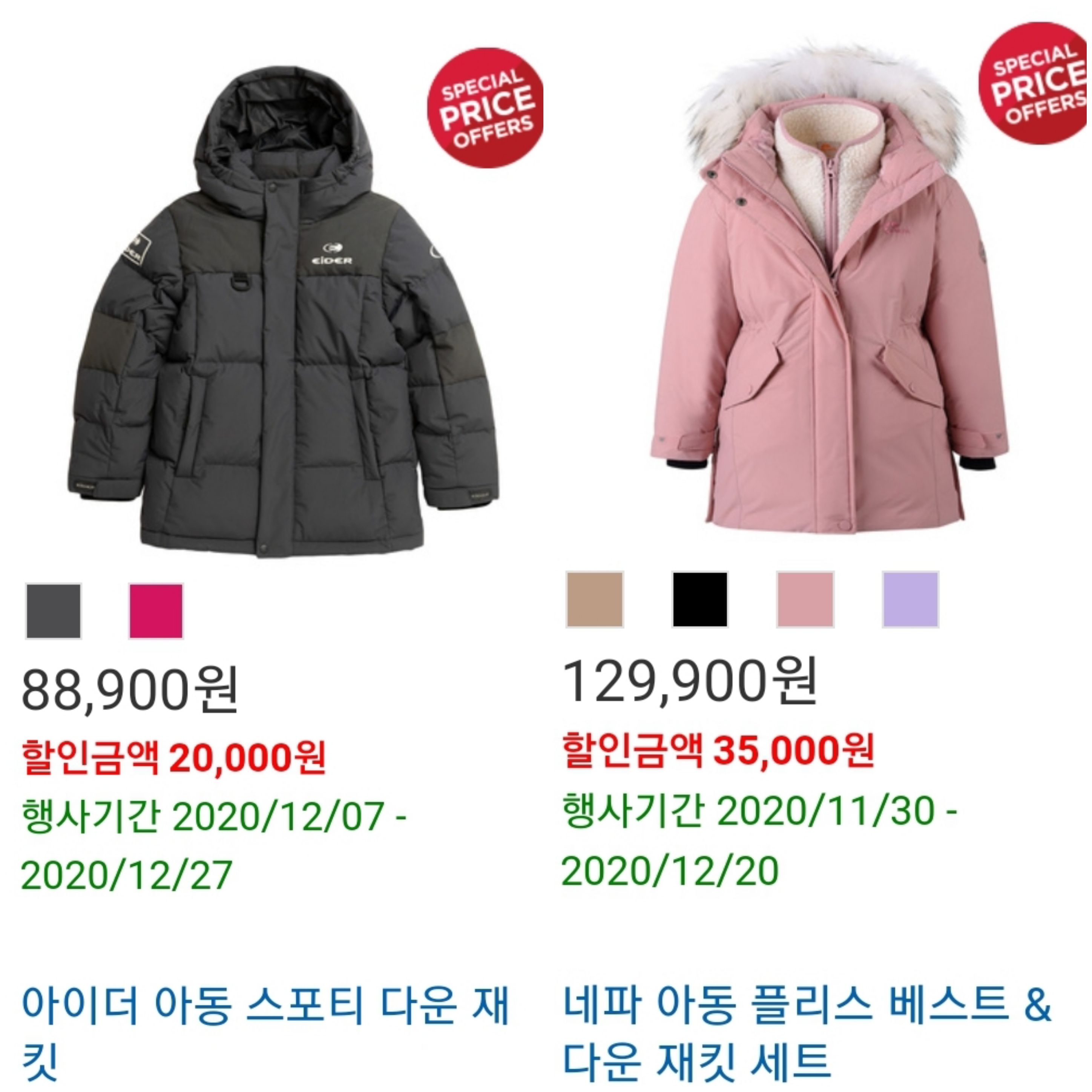 아동용 다운 점퍼를 할인된 가격으로 판매하고 있습니다