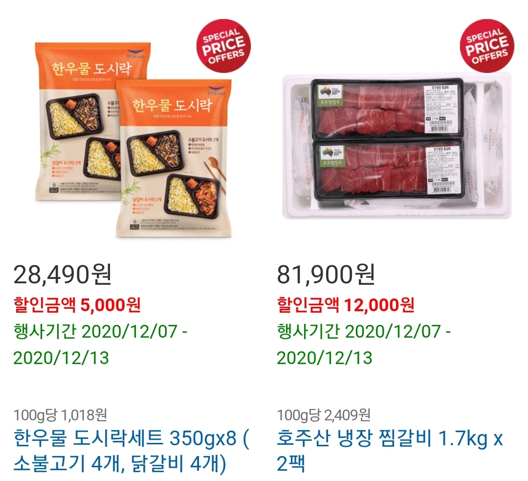 한우물 도시락, 호주산 냉장 찜갈비도 있네요