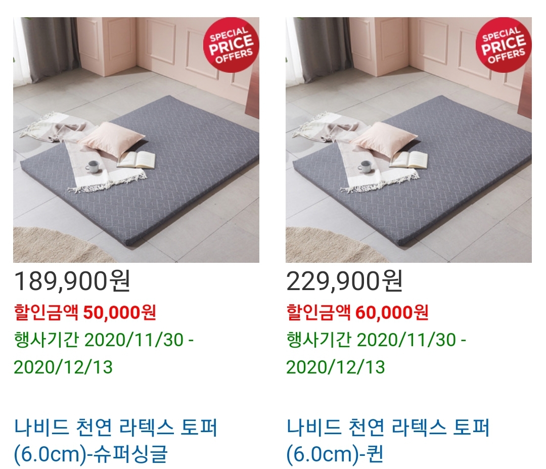 라텍스 토퍼 슈퍼싱글/퀸 사이즈 할인 판매중 입니다
