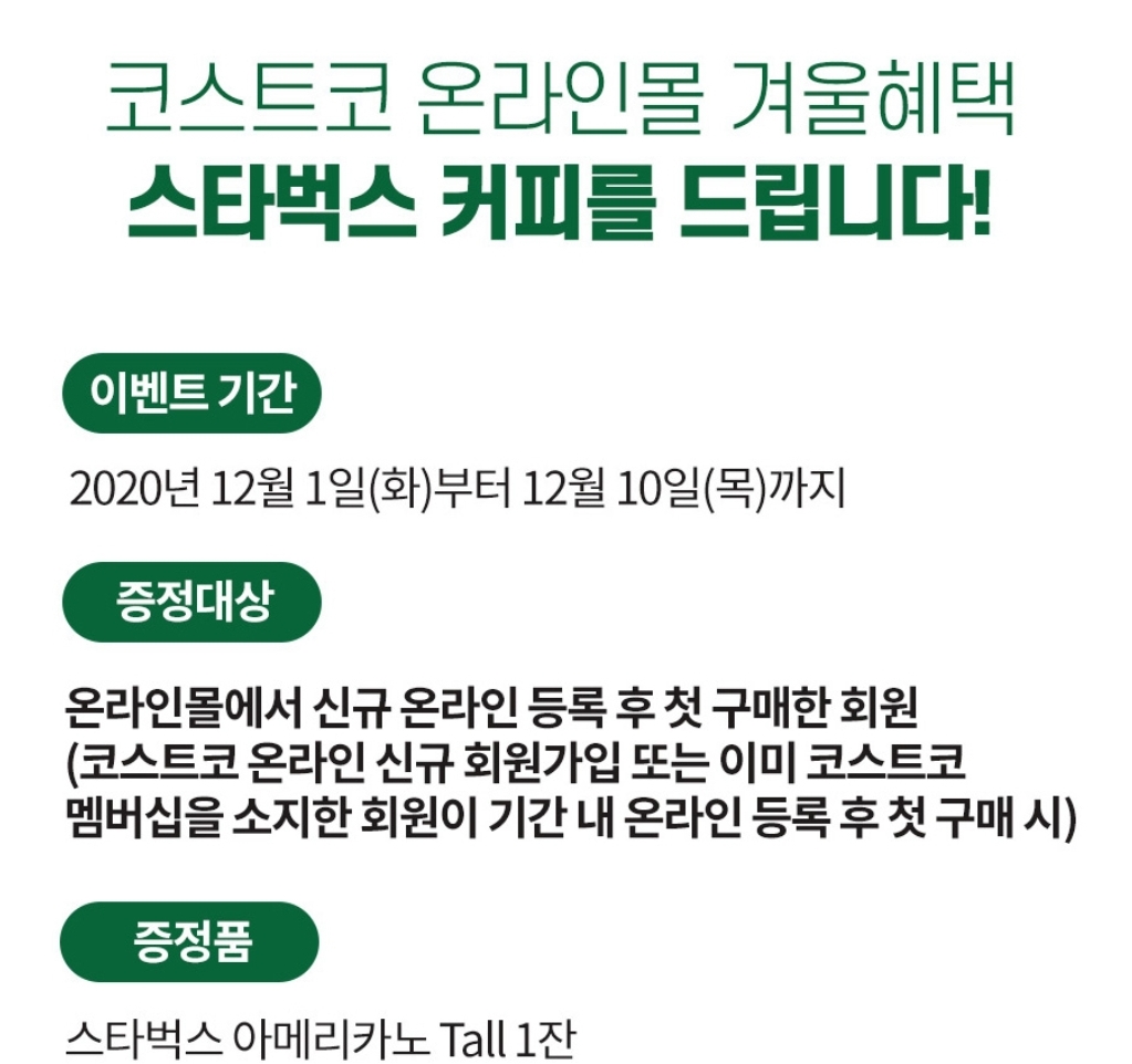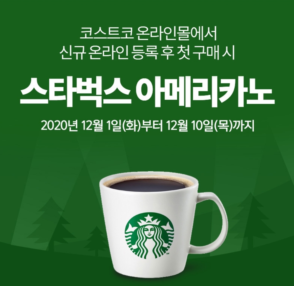 먼저 아직까지 코스트코 온라인몰 등록을 안하신 분들께 희소식 하나를 전해드리도록 하겠습니다 12월 10일까지 코스트코 온라인몰 신규 등록시 스타벅스 아메리카노 쿠폰을 드리는 이벤트를 진행합니다