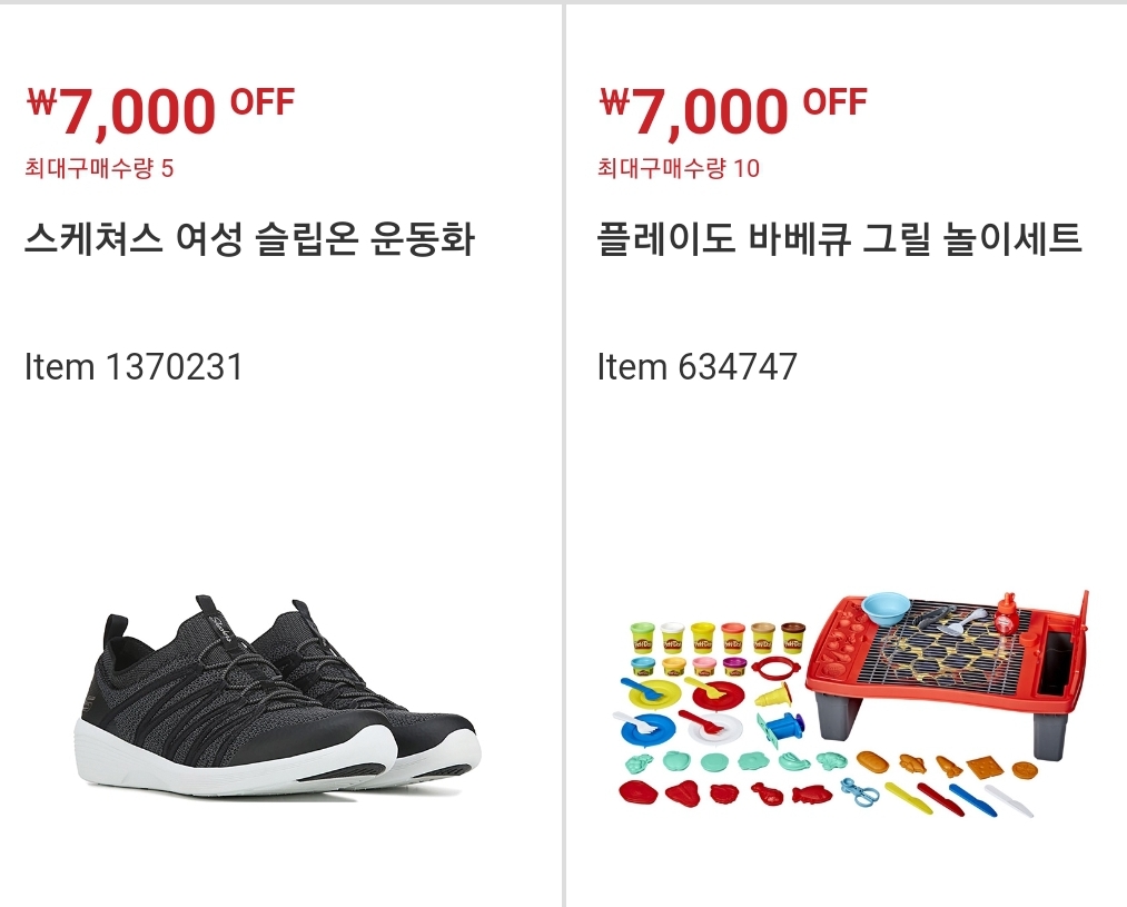 스케쳐스 여성 슬립온 운동화, 플레이도 바베큐 그릴 놀이세트도 코스트코 할인 쿠폰 대상입니다