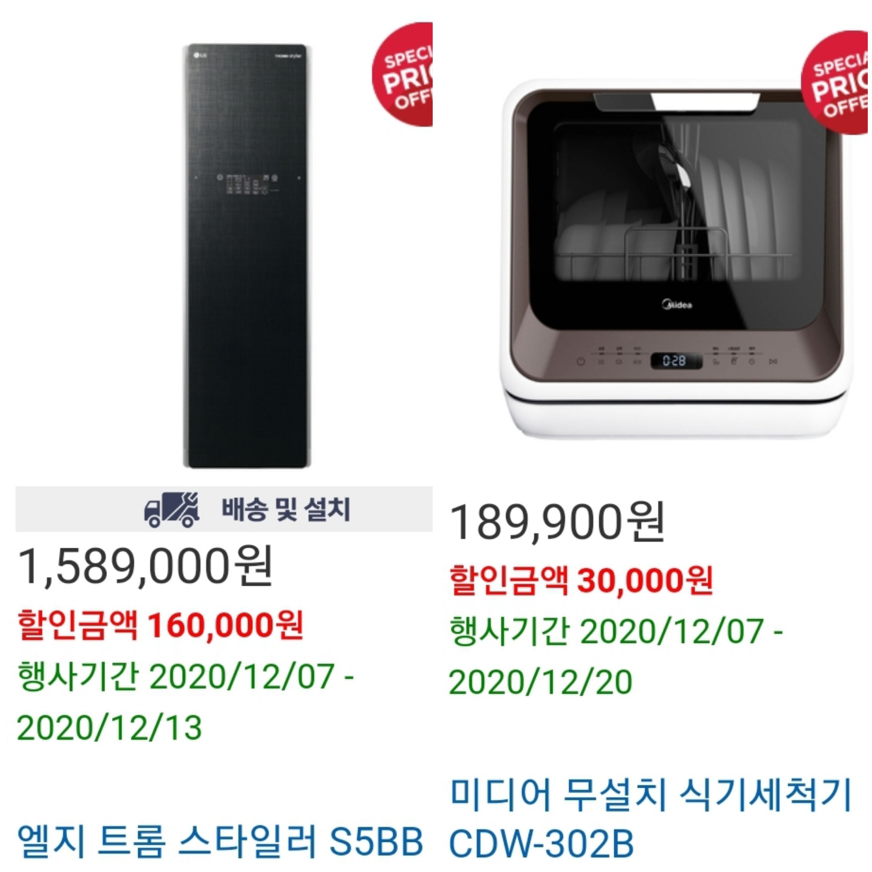 12월 둘째주에는 LG워시타워와 밀레 식기 세척기가 할인 상품에 포함되어 있습니다 특히 밀리 식기 세척기는 식기 세척기 중에서도 인기가 엄청난 제품인데요 가격비교 해보시고 구매해보셔도 좋을 것 같습니다