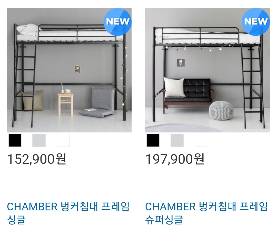벙커침대 프레임이 싱글, 슈퍼싱글 사이즈 두가지 타입으로 신규 추가 되었습니다