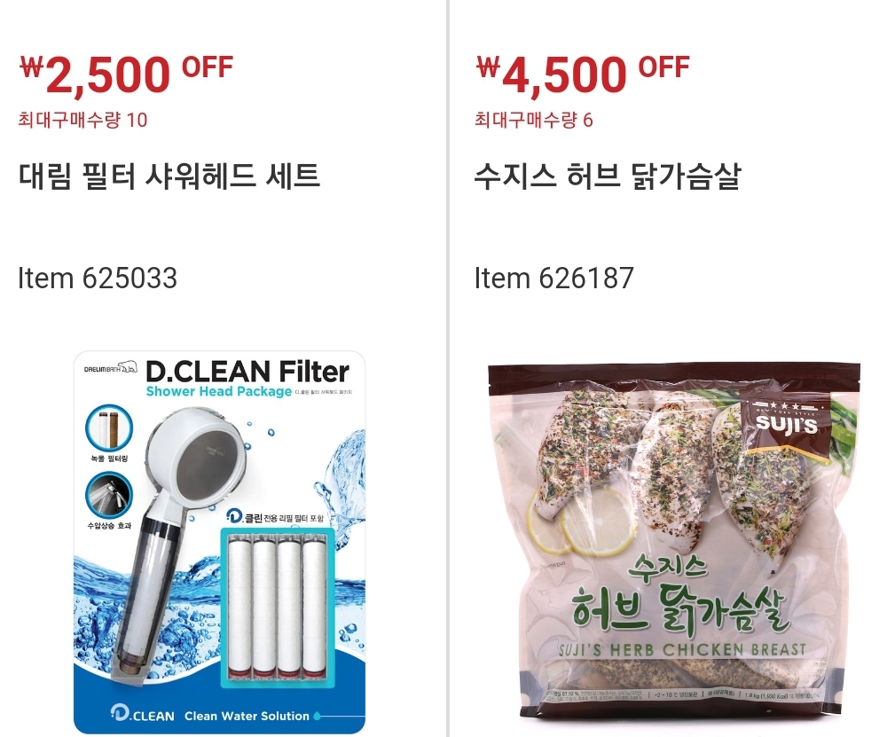 대림 필터 샤워기, 수지스 허브 닭가슴살도 코스트코 할인 쿠폰 행사 대상입니다