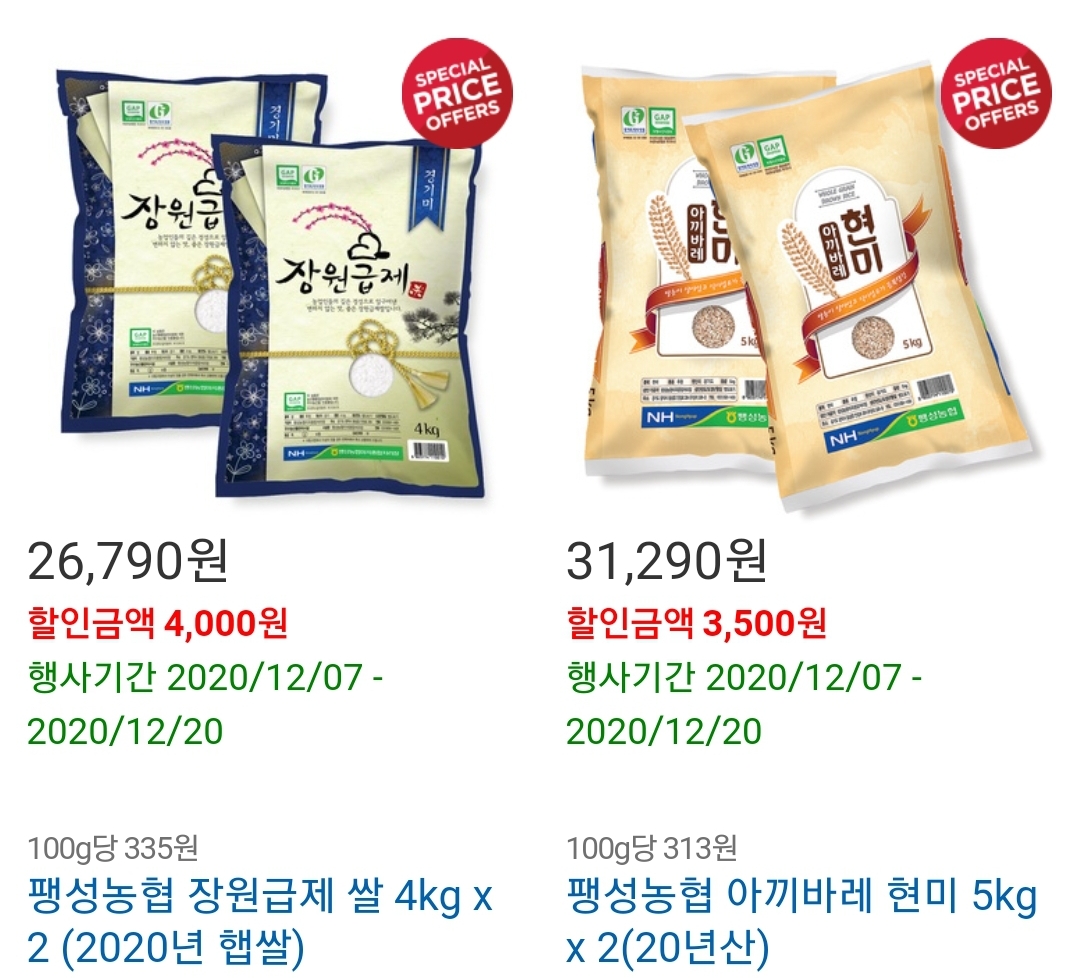 이번주 코스트코에서는 팽성농협 쌀과 아끼바레 현미를 할인된 가격으로 판매합니다