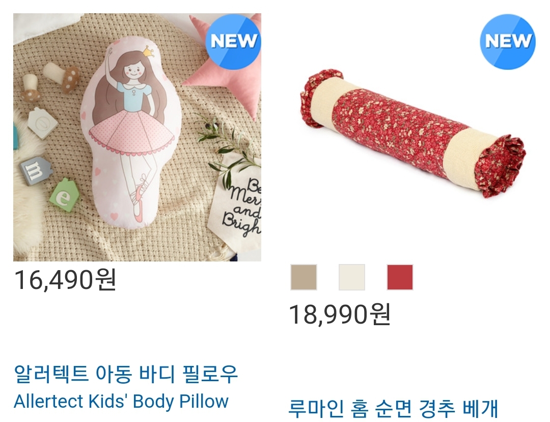 아동용 바디 필로우와 경추 베게도 추가되었네요