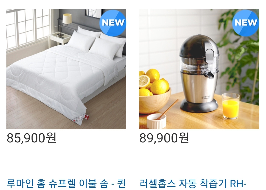 퀸사이즈 이불 솜, 러셀홉스 자동 착즙기 가 신규 추가되었습니다