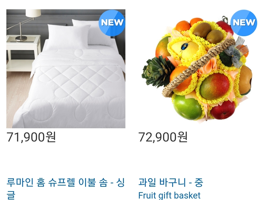 싱글사이즈 이불 솜, 과일 바구니 중 사이즈가 신규 추가되었습니다