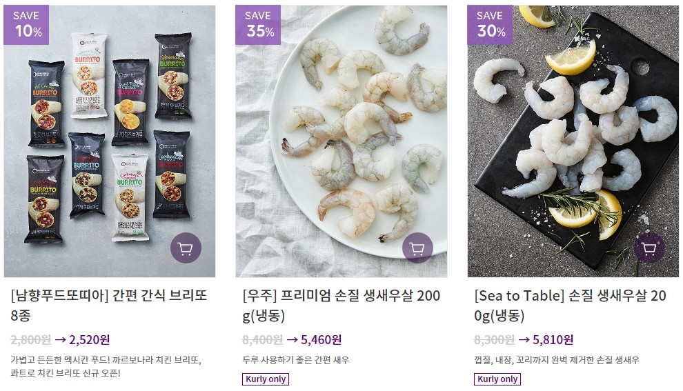 간편 간식 브리또, 생새우살은 마켓컬리 추천상품 베스트에도 포함되어 있는 상품인데 할인까지 하고 있네요