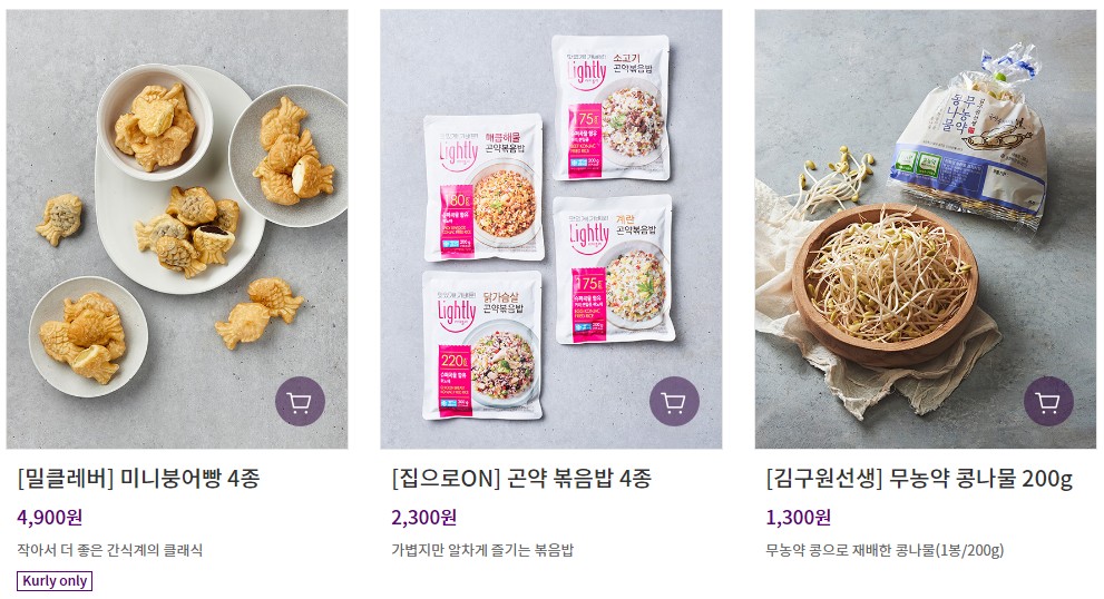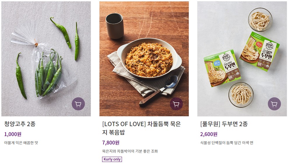 곤약 볶음밥과 무농약 콩나물도 마켓컬리 추천상품 상위에 랭크되어 있습니다