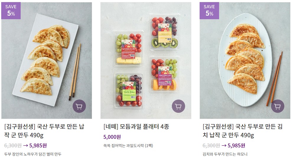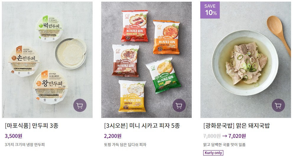 만두피, 미니 시카고 피자, 맑은 돼지국밥 상품들도 있네요