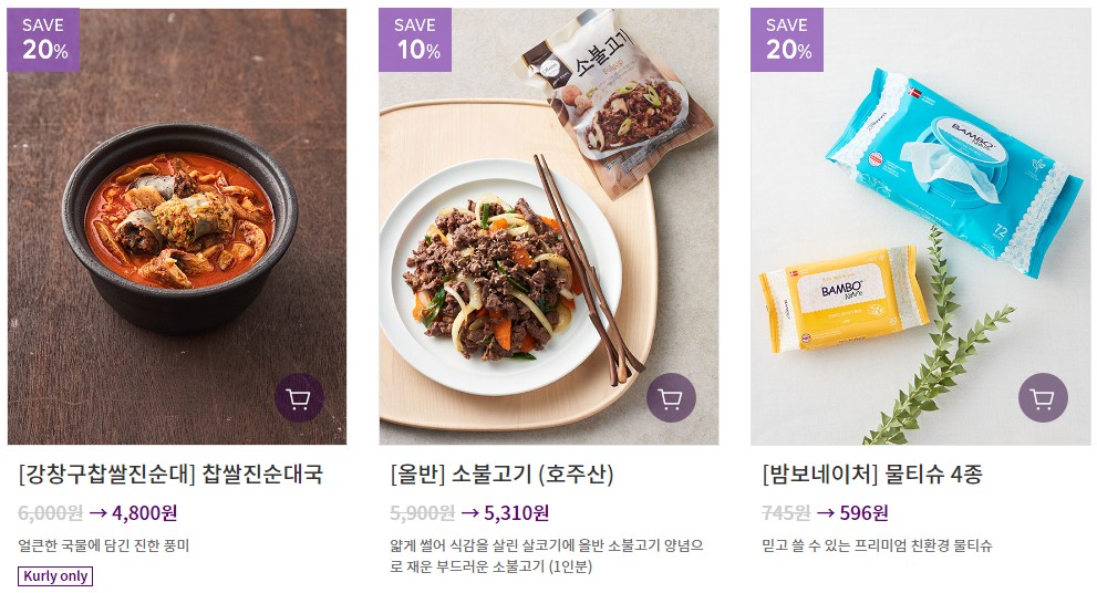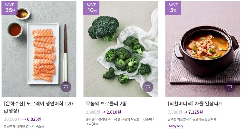 노르웨이 생연어회, 무농약 브로콜리, 차돌 된장찌개도 마켓컬리 할인 상품입니다