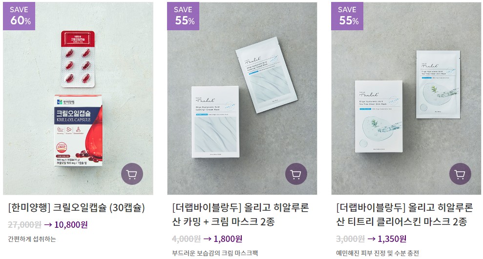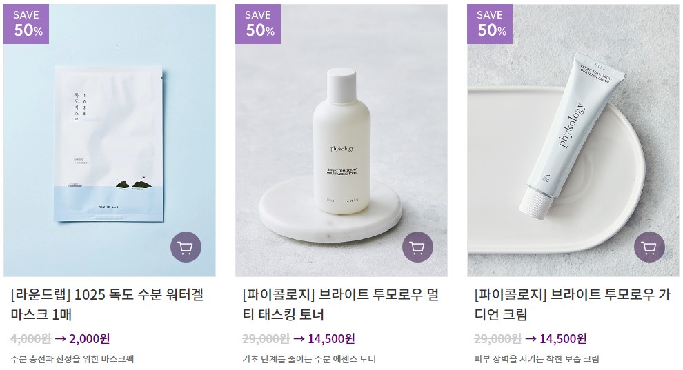 독도 수분 워터겔 마스크, 브라이트 투모로우 멀티 태스킹 토너, 가디언 크림 할인 중 입니다