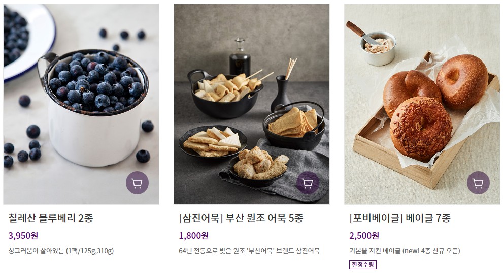 칠레산 블루베리, 부산 어묵, 베이글도 아침 식사로 주문을 많이 하시는 것 같습니다