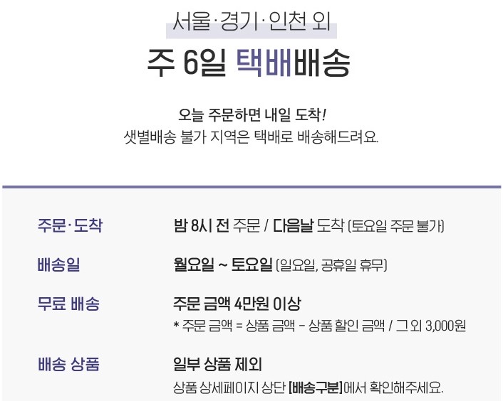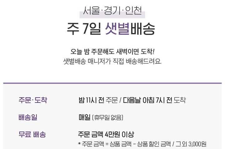 마켓컬리 샛별배송 상세 조건은 다음과 같습니다