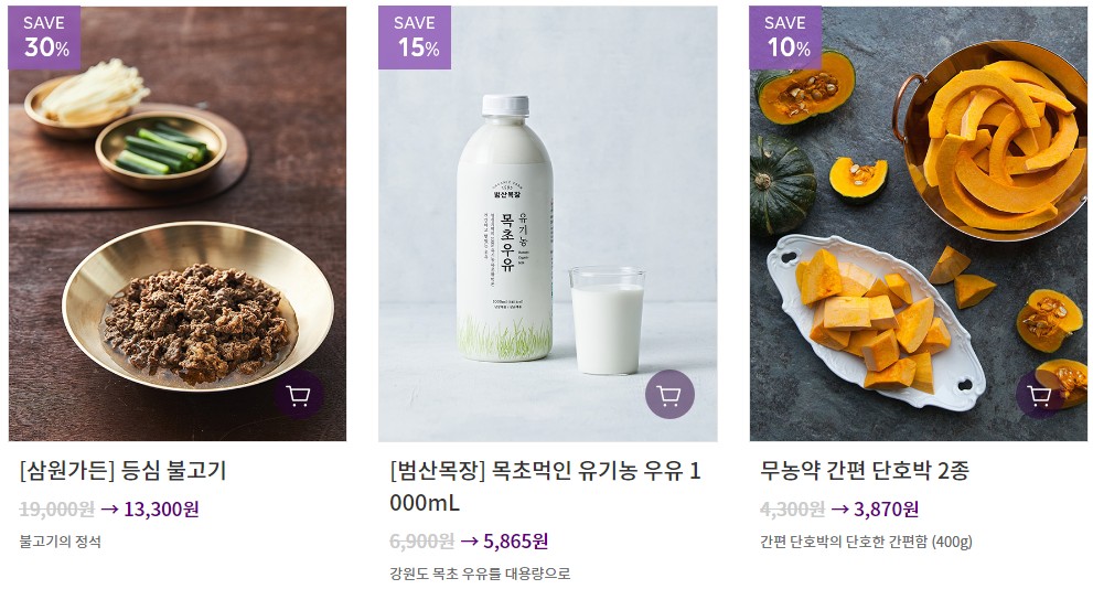 동물복지 우유와 애호박도 많이 팔리고 있습니다