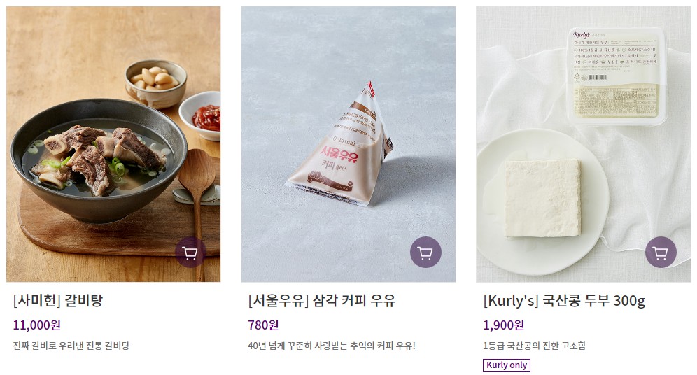 서울우유 삼각 커피 우유, 국산콩 두부도 많은 사랑을 받는 마켓컬리 추천상품 입니다