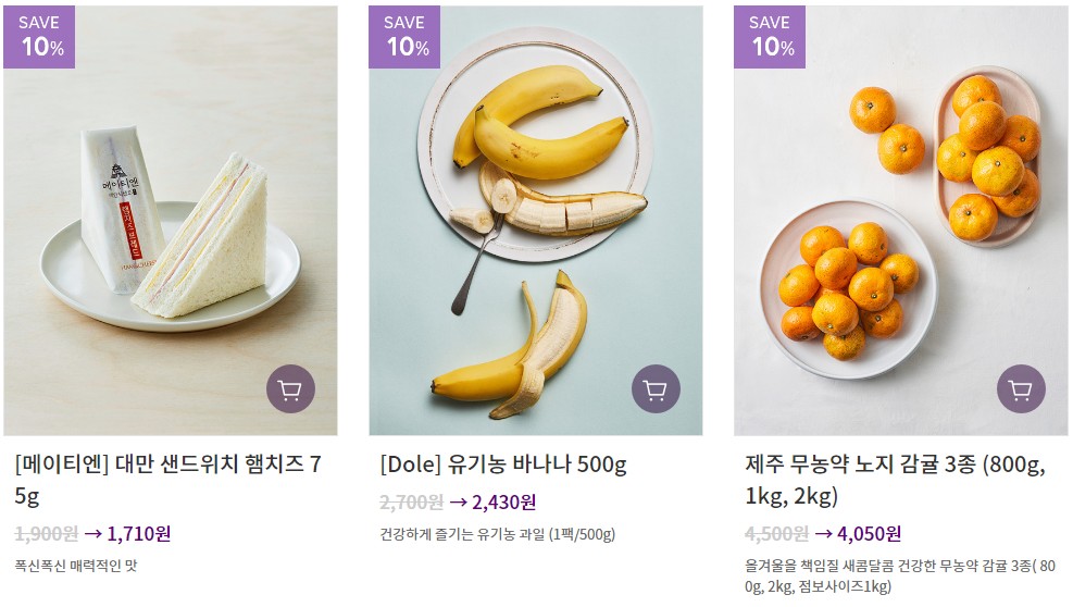 샌드위치, 바나나, 감귤도 할인 중에 있습니다