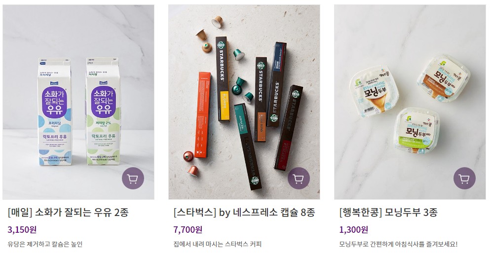 우유 제품도 마켓컬리 새벽배송의 대표 상품입니다 정말 신선한 우유를 아침일찍 맛보실 수 있습니다