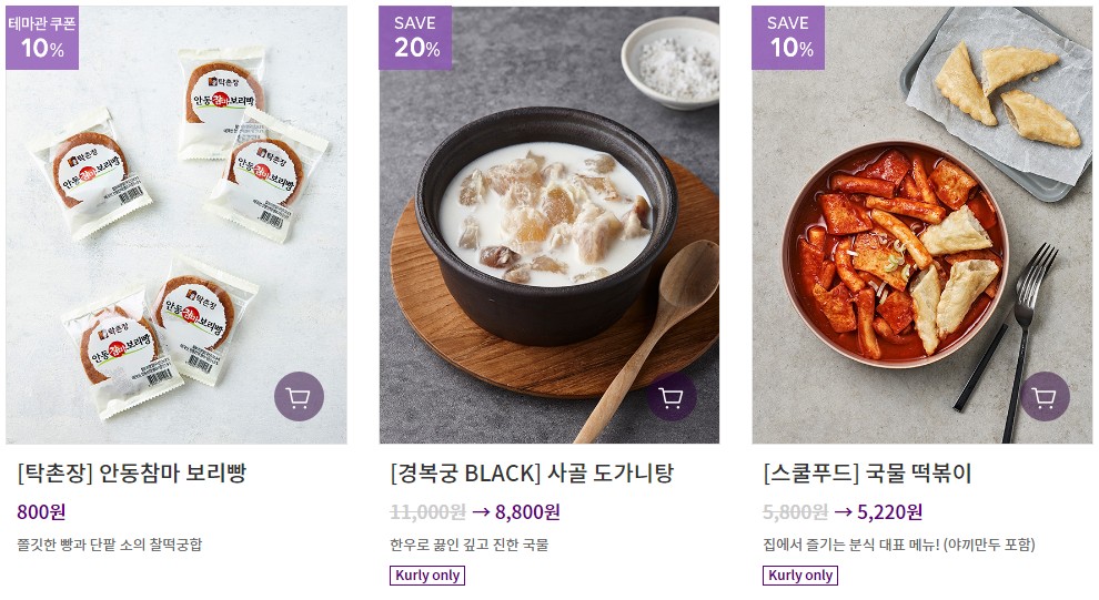 안동참마 보리빵, 사골 도가니탕, 국물떡볶이도 마켓컬리 할인 상품 입니다