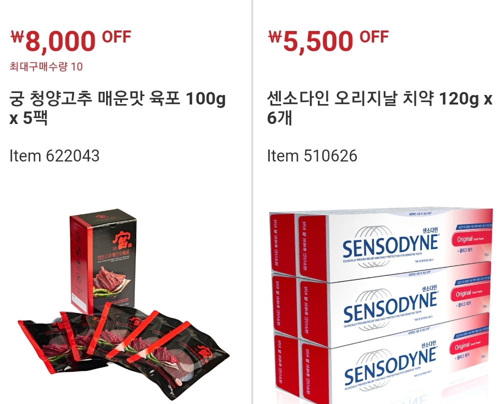 궁 육포, 센소다인 오리지날 치약 할인합니다