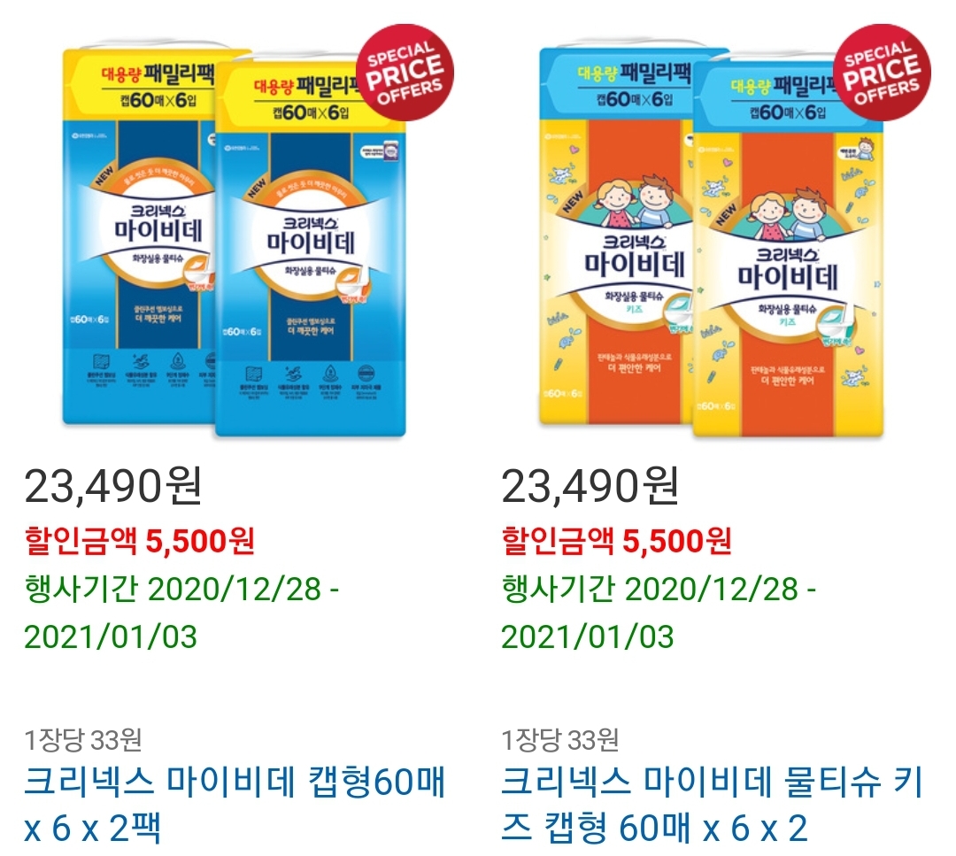 크리넥스 마이비데 제품도 빼놓을 수 없는 베스트 할인 상품 입니다