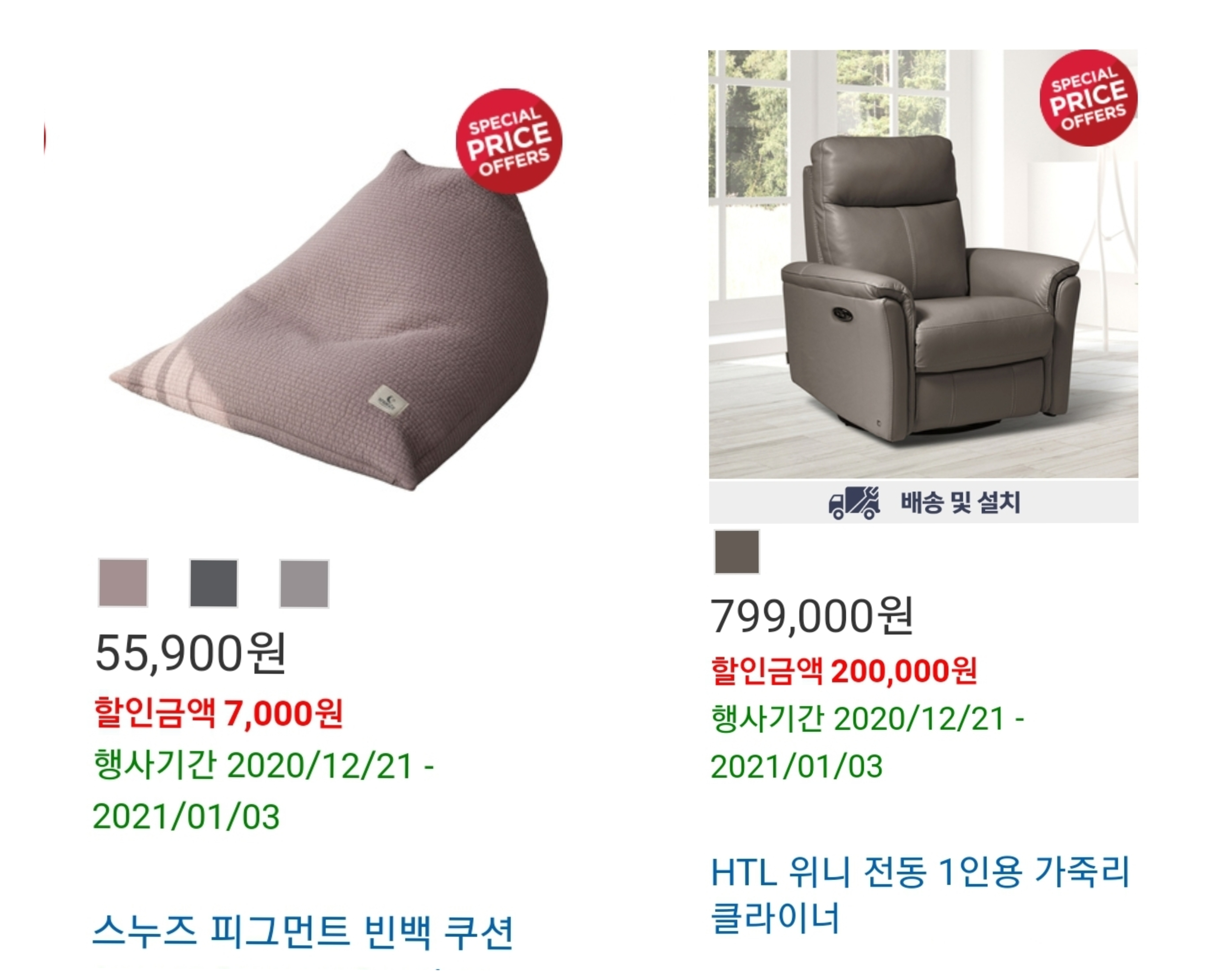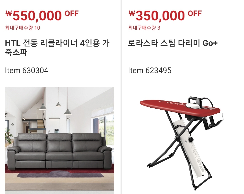 12월 다섯째주에도 전동 리클라이너 4인용 가죽소파, 로라스타 스팀 다리미 할인합니다