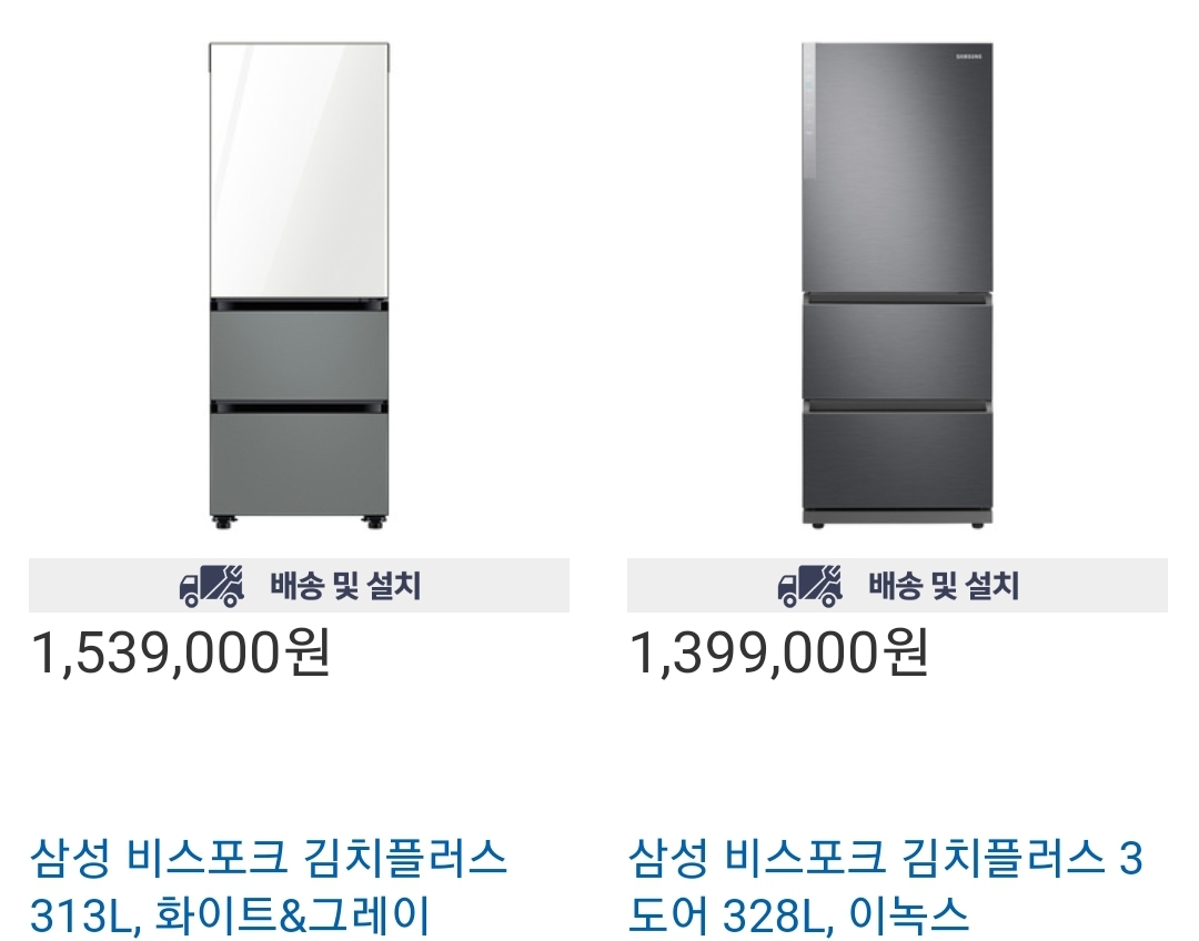 삼성 비스포크 김치플러스 313l 화이트&그레이, 328l 이녹스 색상 판매중입니다