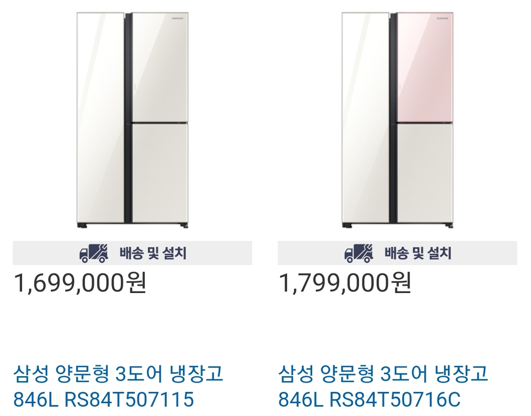 삼성 양문형 3도어 냉장고 846l 색상별로 코스트코 할인 판매중입니다