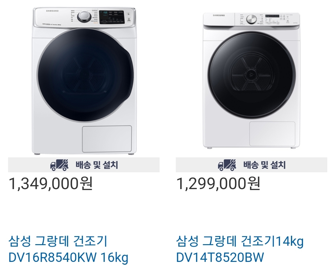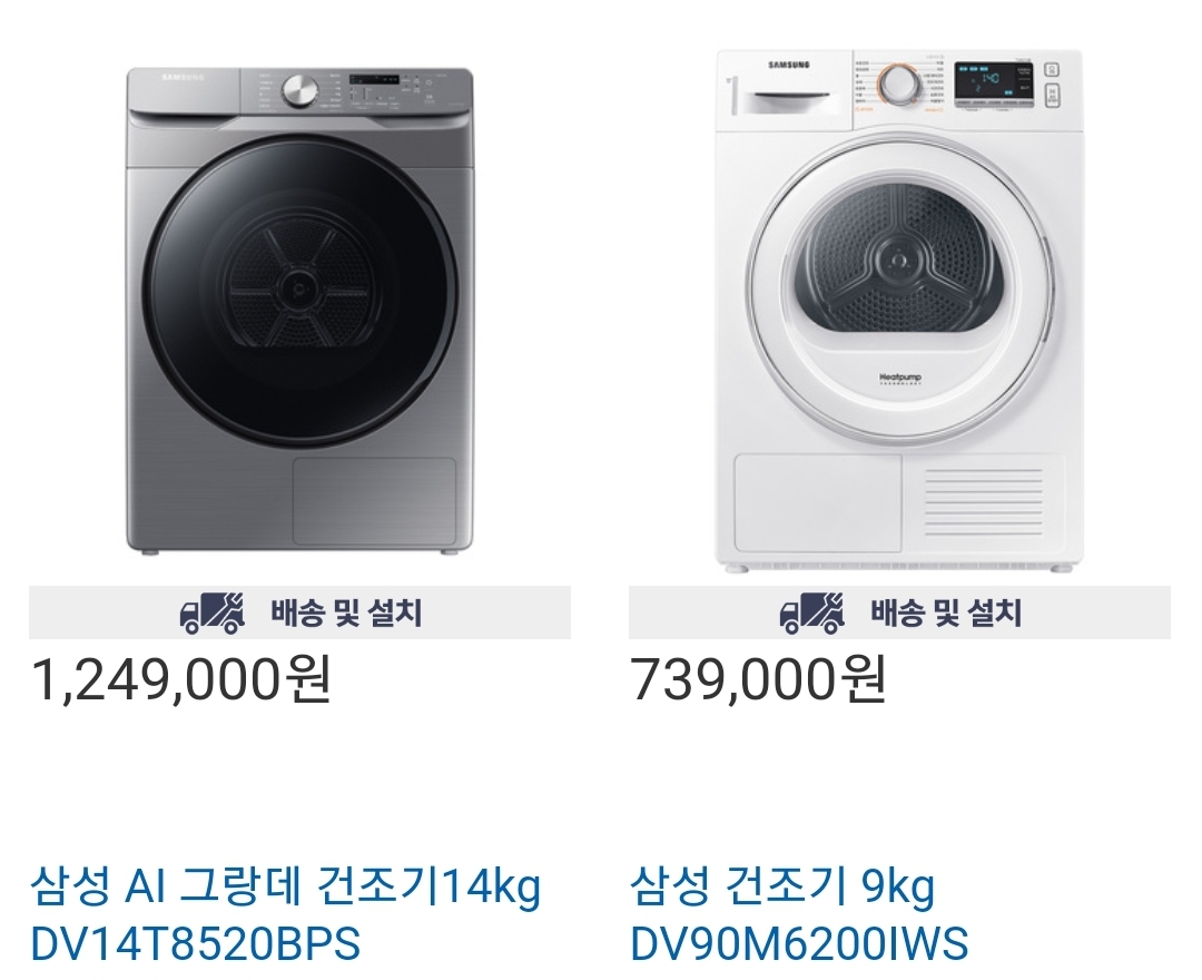 삼성 ai 그랑데 건조기 14kg 일반 삼성 건조기 9kg 판매하고 있습니다
