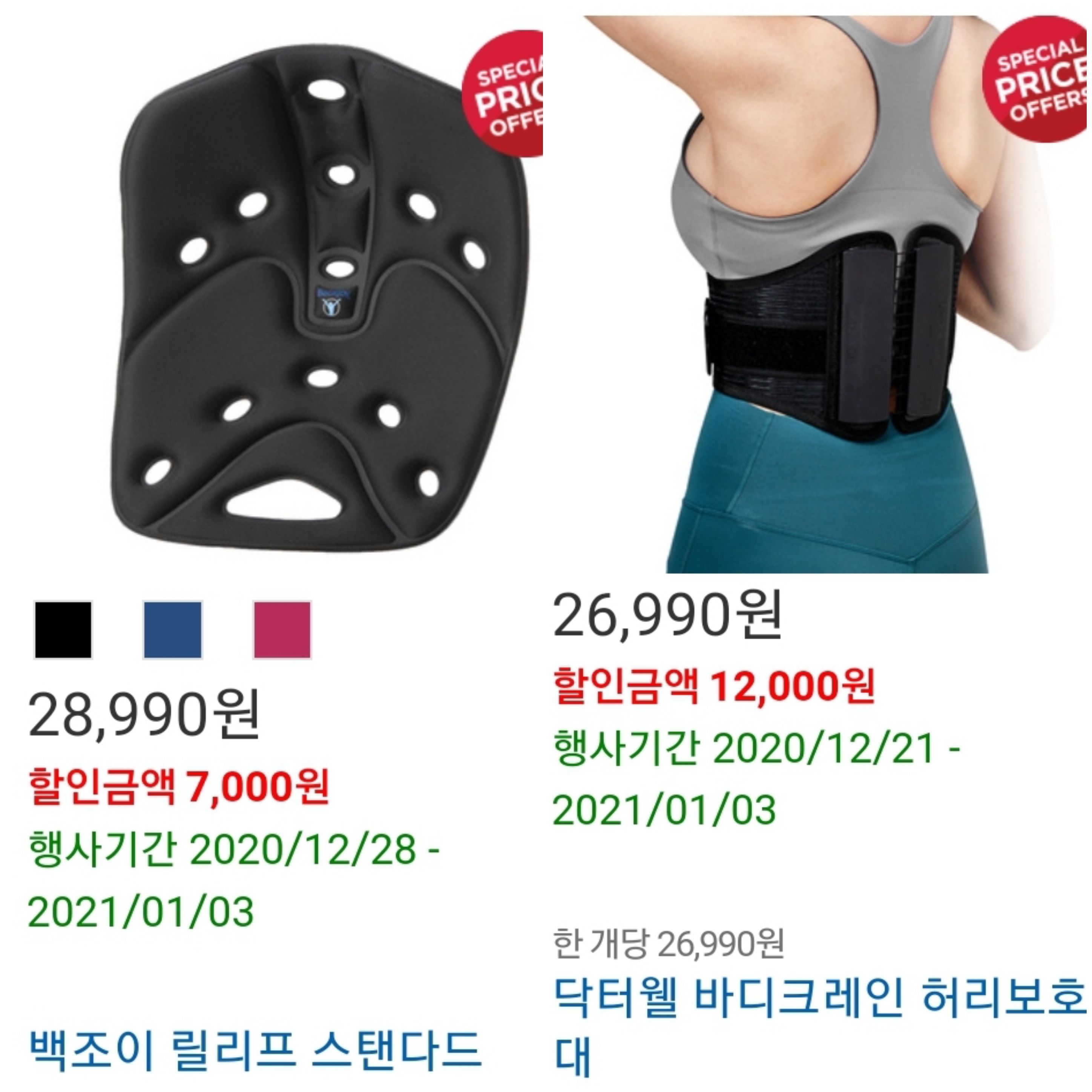 허리 건강을 위한 제품들도 있네요