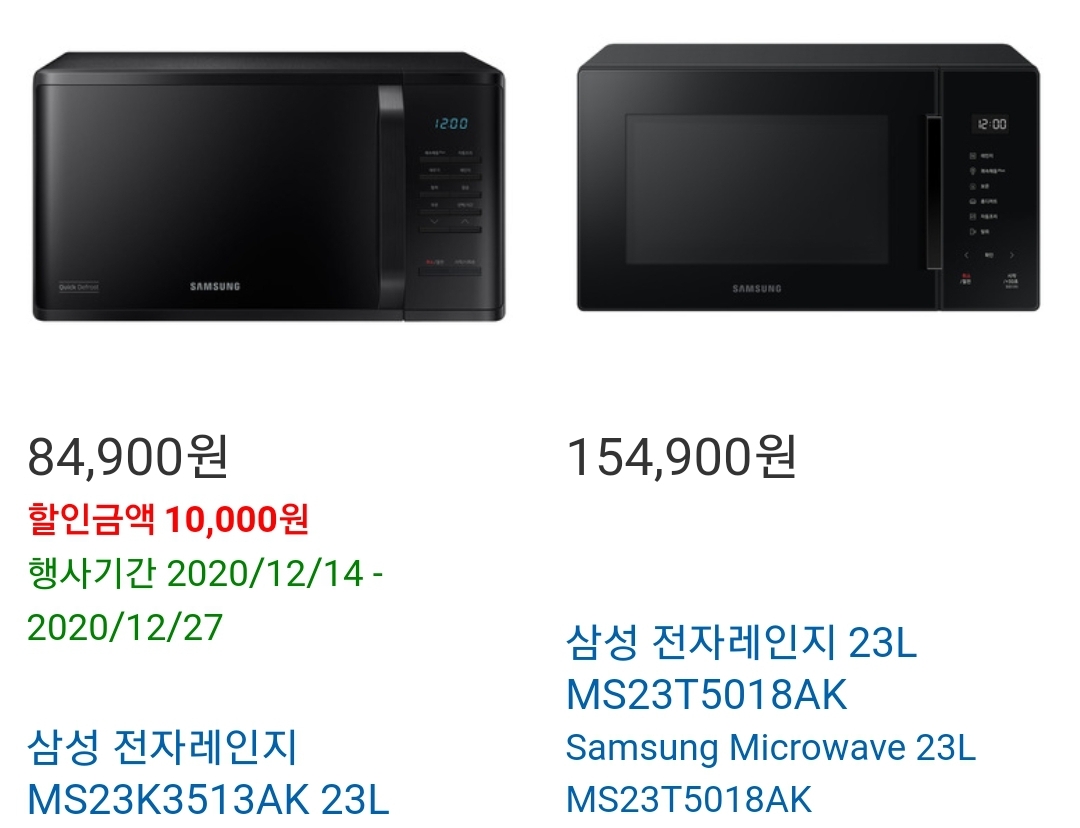 다음은 삼성 전자레인지 23l 제품입니다