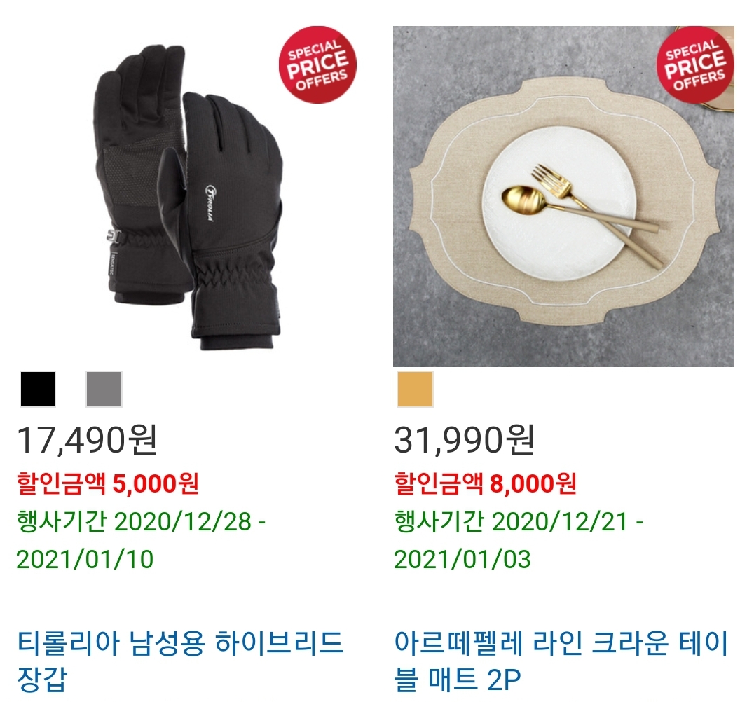 티롤리아 남성 하이브리드 장갑 그리고 아르떼펠레 라인 크라운 테이블 매트 할인 합니다
