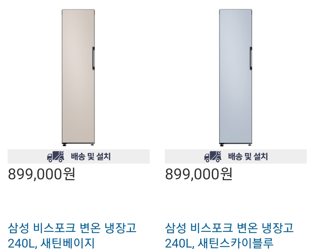 삼성 비스포크 변온 냉장고 240l 새틴베이지, 새틴스카이블루 총 3가지 색상 판매중 입니다