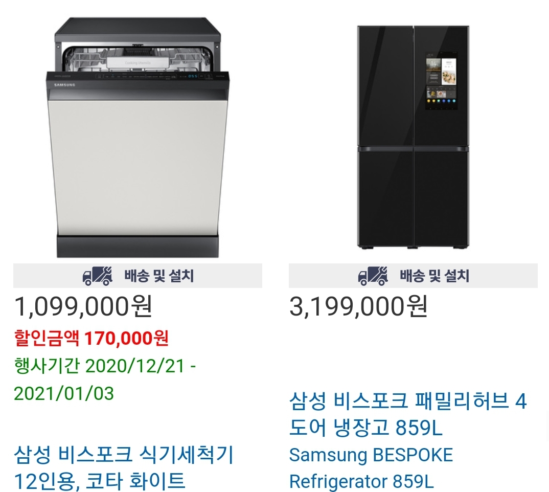다음은 코스트코 할인 12월 다섯째주 삼성 비스포크 냉장고 입니다