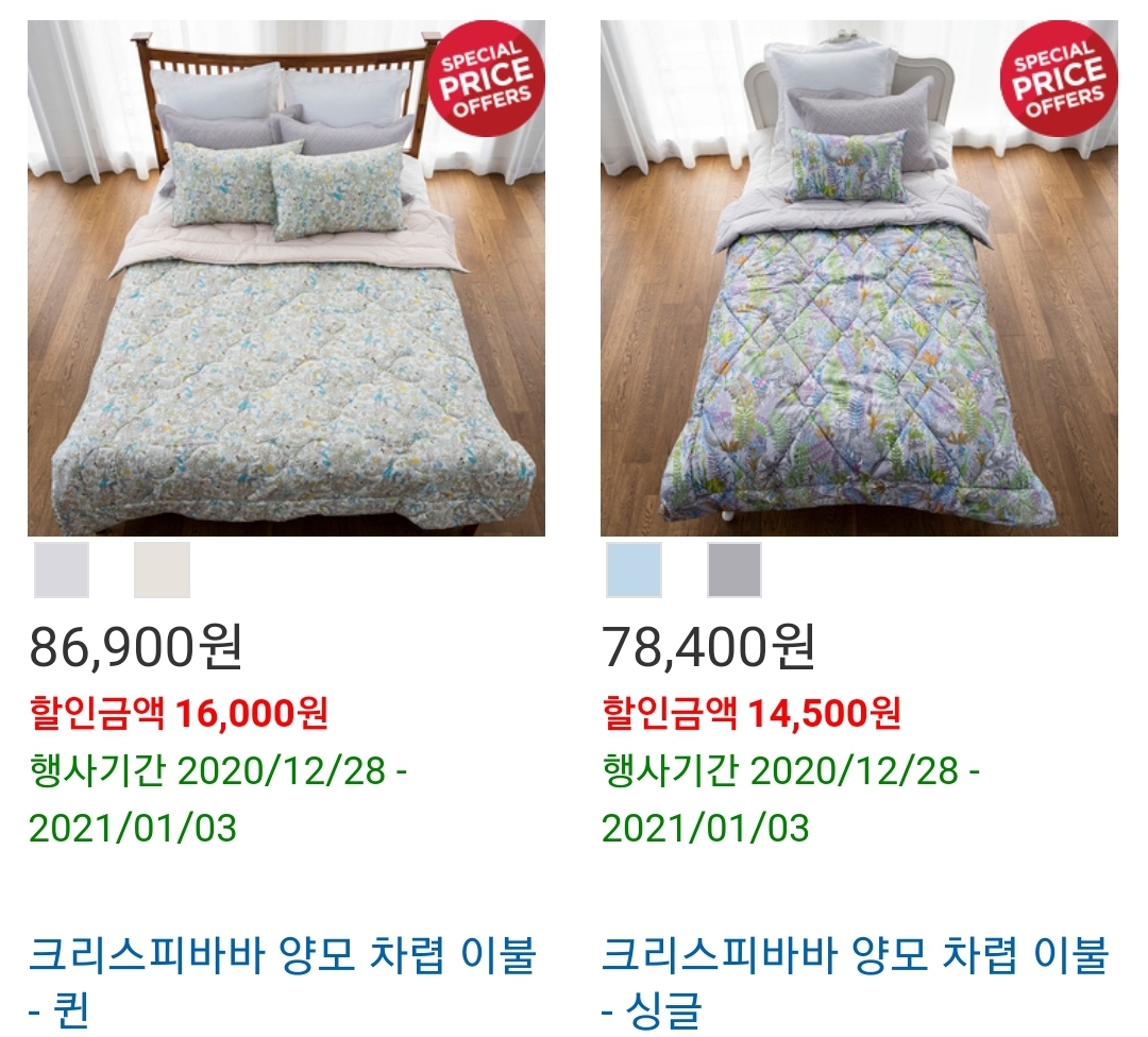 양모 차렵 이불 퀸사이즈 싱글 사이즈도 있습니다
