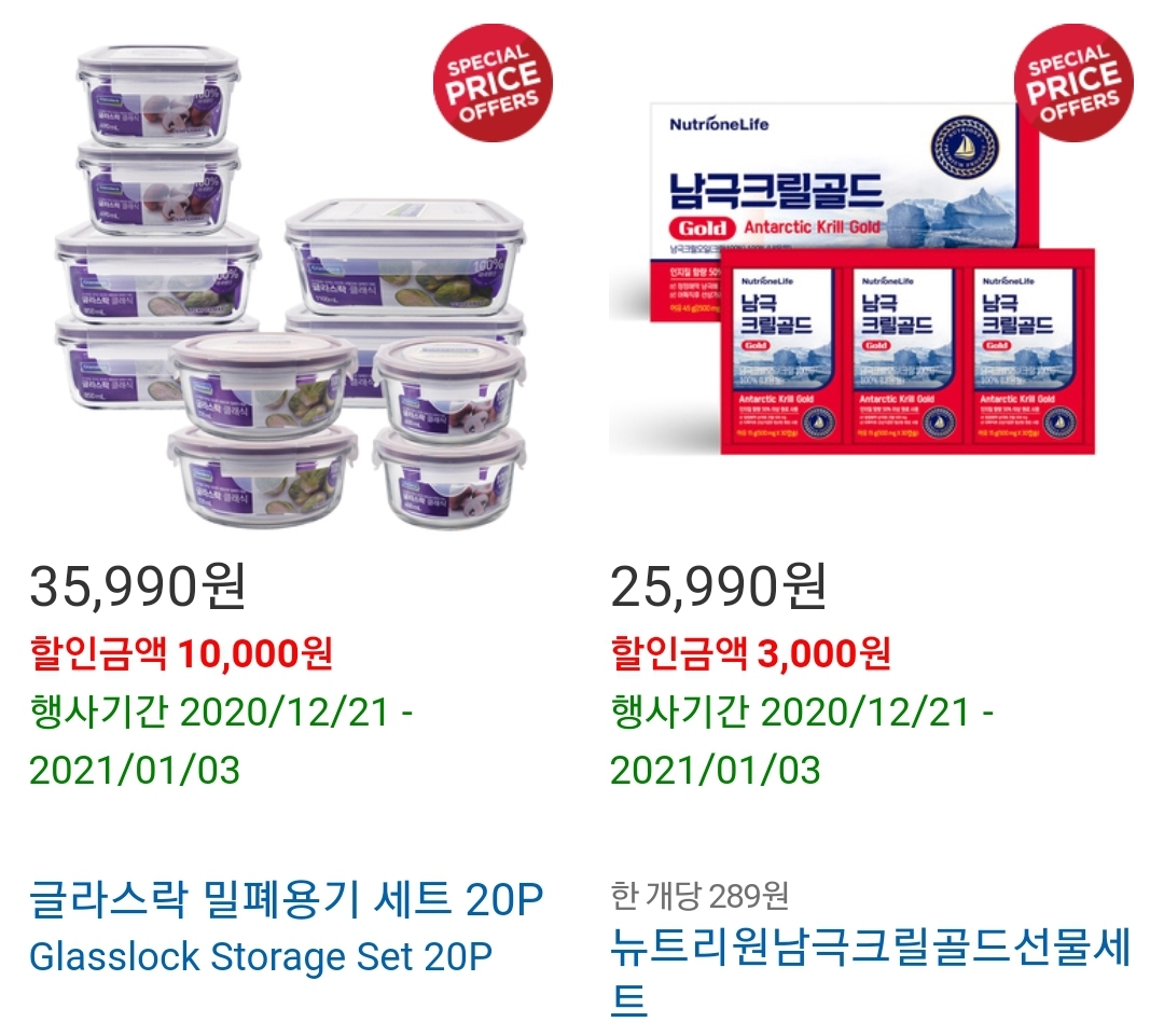 글라스락 밀폐용기 세트 뉴트리원 남극 크릴골드선물세트도 할인 중 입니다