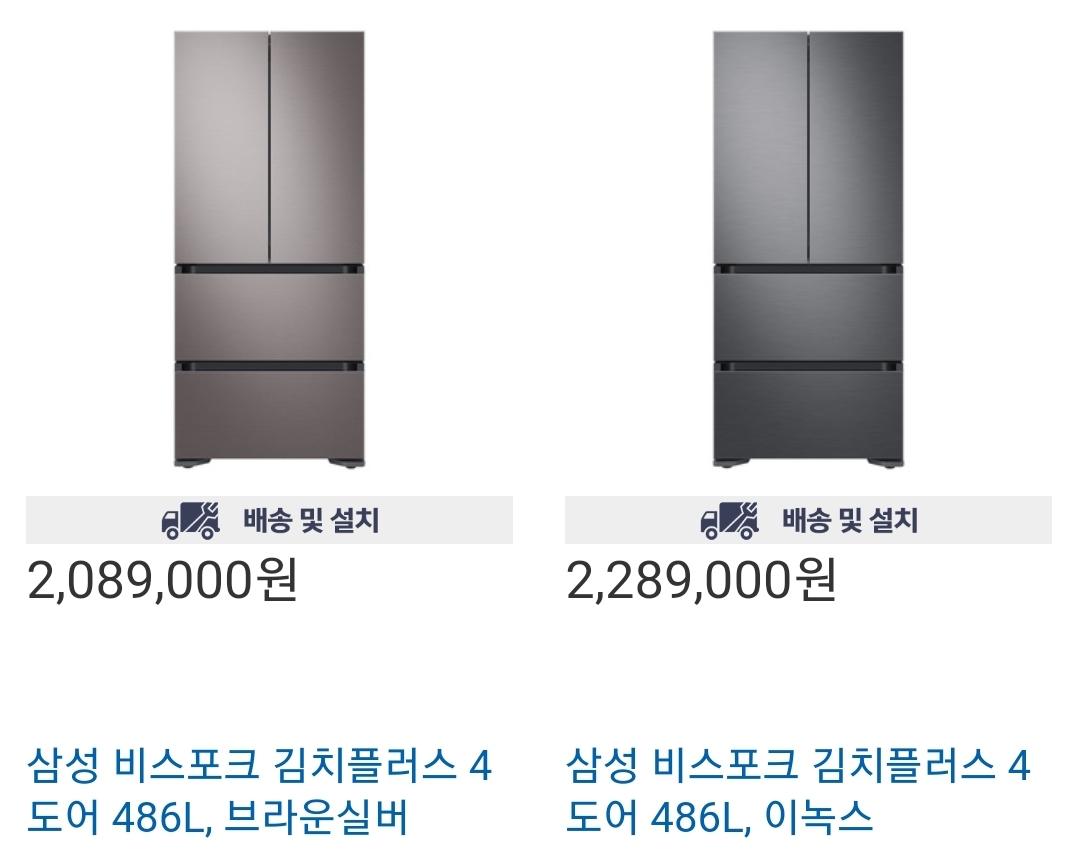 삼성 비스포크 김치플러스 4도어 486l 브라운실버, 이녹스 색상 판매중입니다