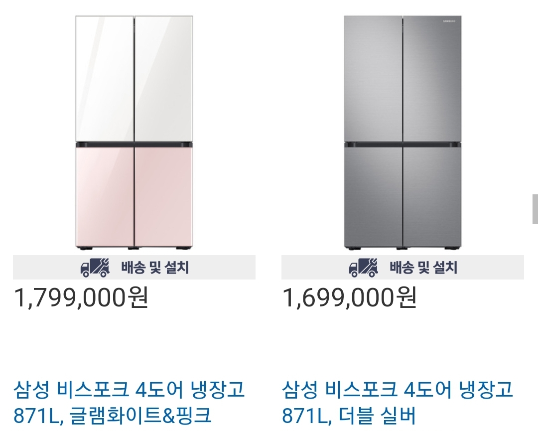 삼성 비스포크 4도어 냉장고 871l 글램화이트&핑크 색상 판매중입니다