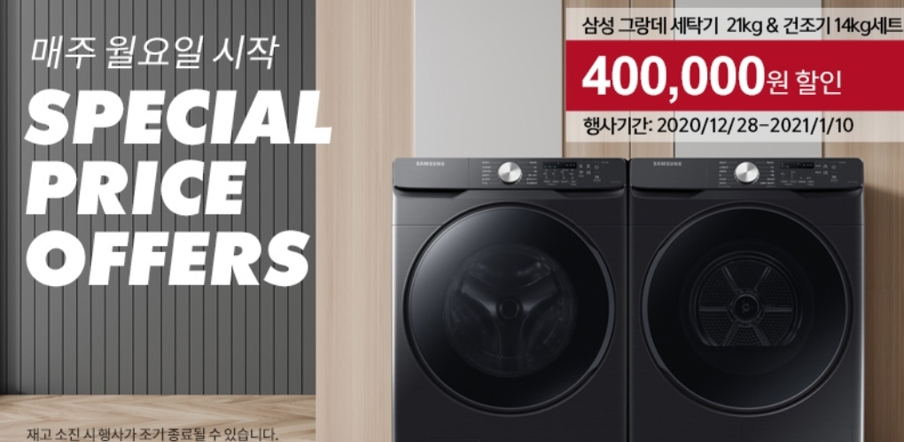 코스트코 할인 12월 다섯째주 행사로 코스트코에서는 2020년을 총결산하는 삼성전자 20년 베스트 가전제품 총결산 기획전을 진행하고 있습니다 건조기 세탁기 냉장고 김치냉장고 에어드레서 인덕션 식기세척기 무선청소기 외장하드까지 정말 다양한 제품을 할인된 가격으로 판매하고 있습니다