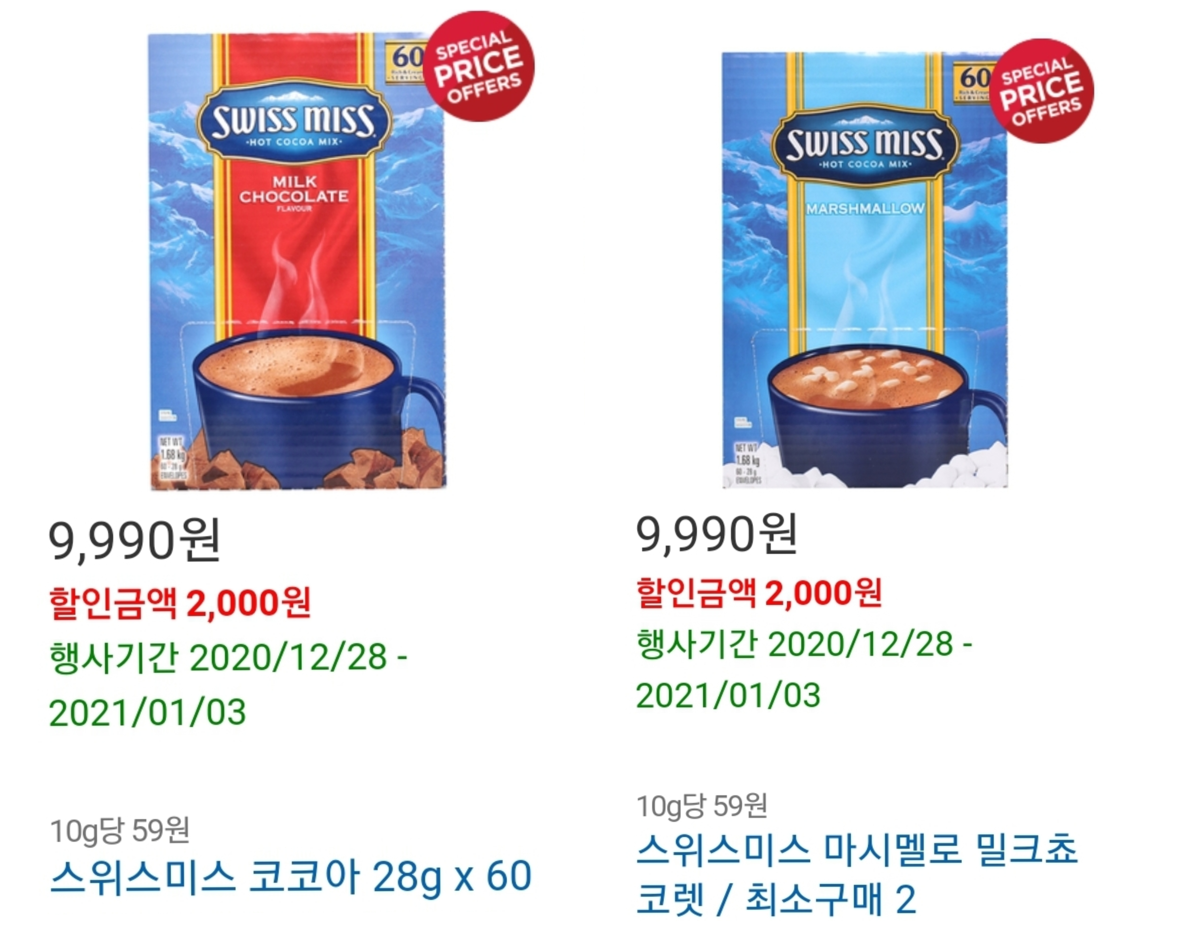 스위스미스 코코아와 마시멜로 밀크쵸코렛 할인 판매합니다