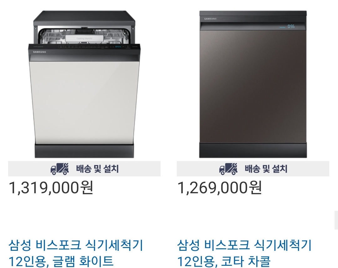 삼성 비스포크 식기세척기 12인용 글램화이트, 코타차콜 제품도 있습니다