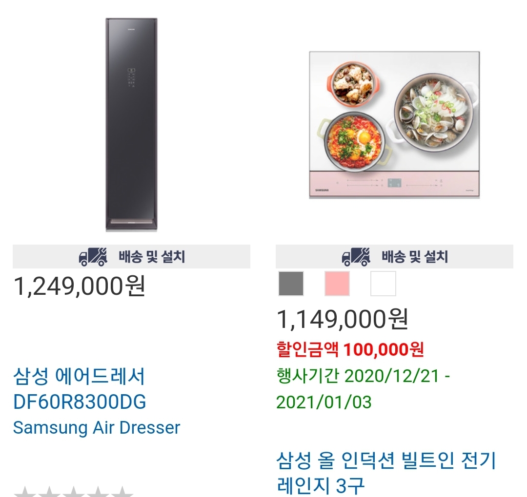 다음은 삼성 에어드레서 입니다 가격은 1,249,000원입니다