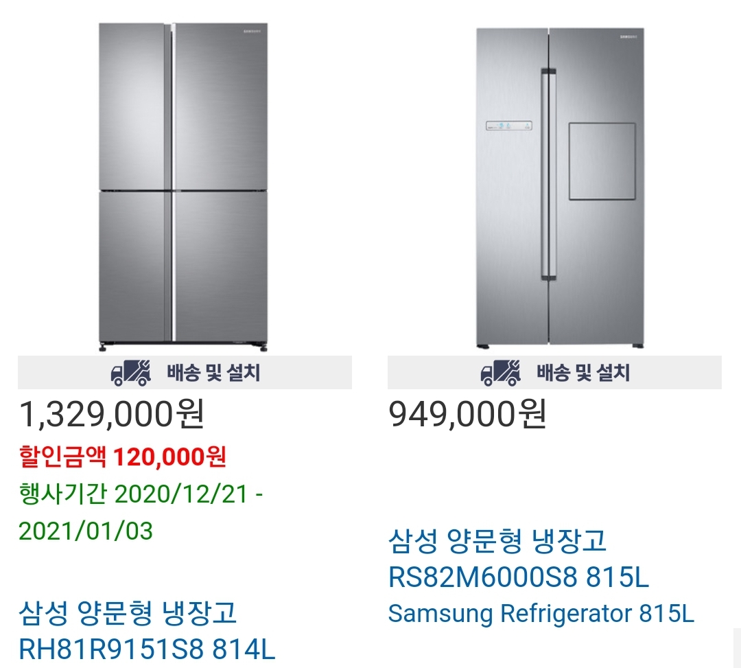 일반 삼성 양문형 냉장고 814l, 815l 제품도 코스트코 12월 다섯째주 할인상품에 포함되어 있습니다