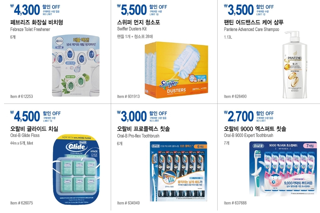다음은 코스트코 할인 12월 다섯째주 P&G 할인 상품 안내 입니다