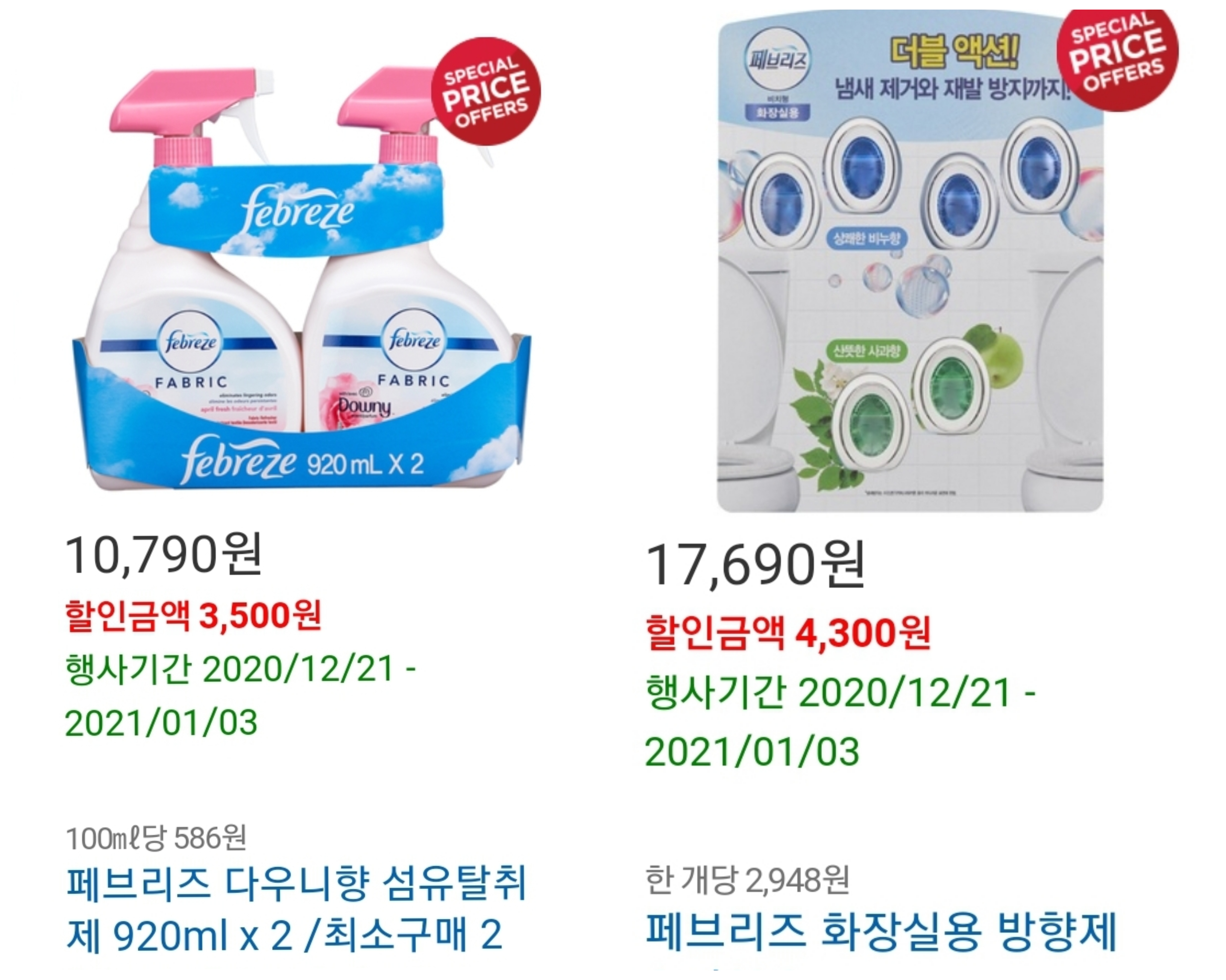 스테디 셀러인 페브리즈 에어 공기탈취제도 판매 중 입니다